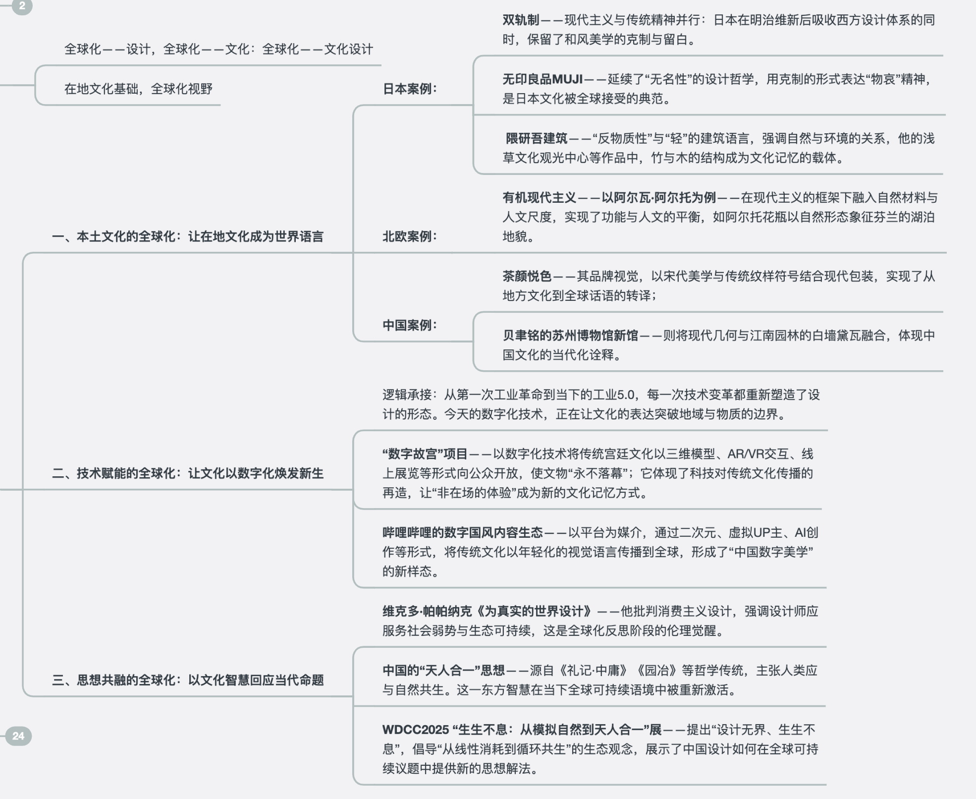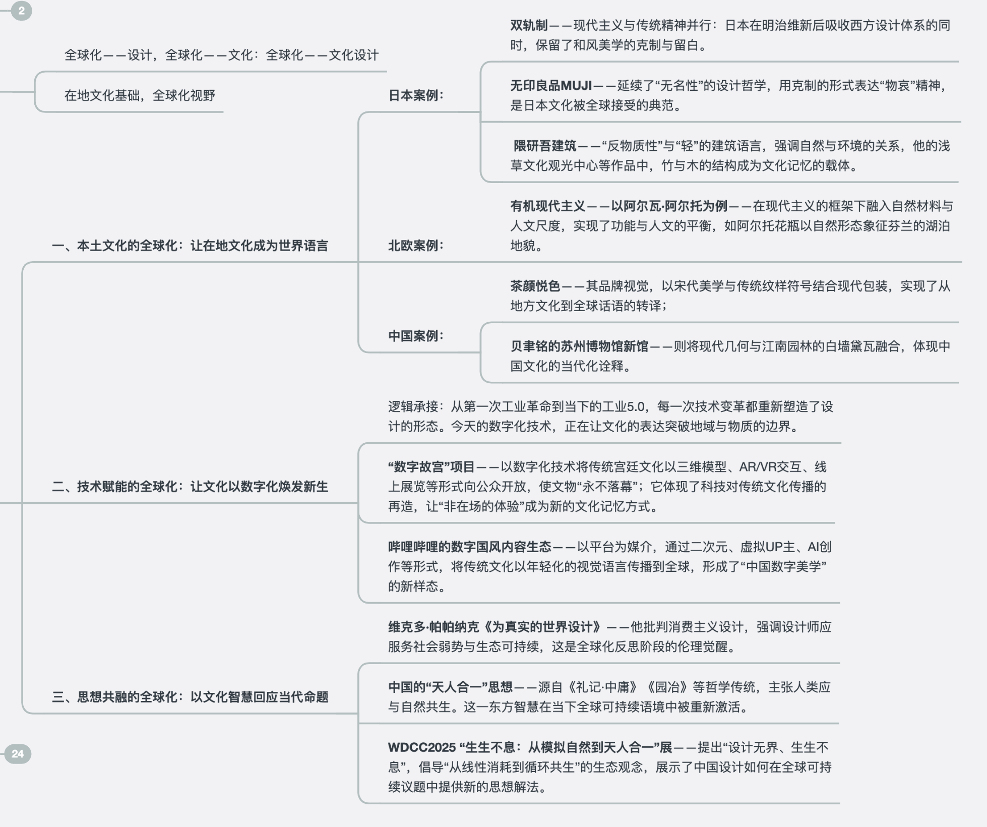 全球化视野的设计是一种多维度的文化碰撞,关乎工艺样式、数字科技与哲学思想,它使设计成为沟通文化、技术与伦理的桥梁。如今,中国正通过文化自信与全球视野,在世界设计格局中确立新的坐标,为世界贡献中国智慧。因此,全球化设计的真正命题,是以_多元文化的智慧_回应_共同的时代挑战_。它让设计超越国界,成为人类与自然、技术与文明之间的共生语言——正如“生生不息”的理念所揭示的那样,设计的未来,必将在共融中延展出新的生命力。