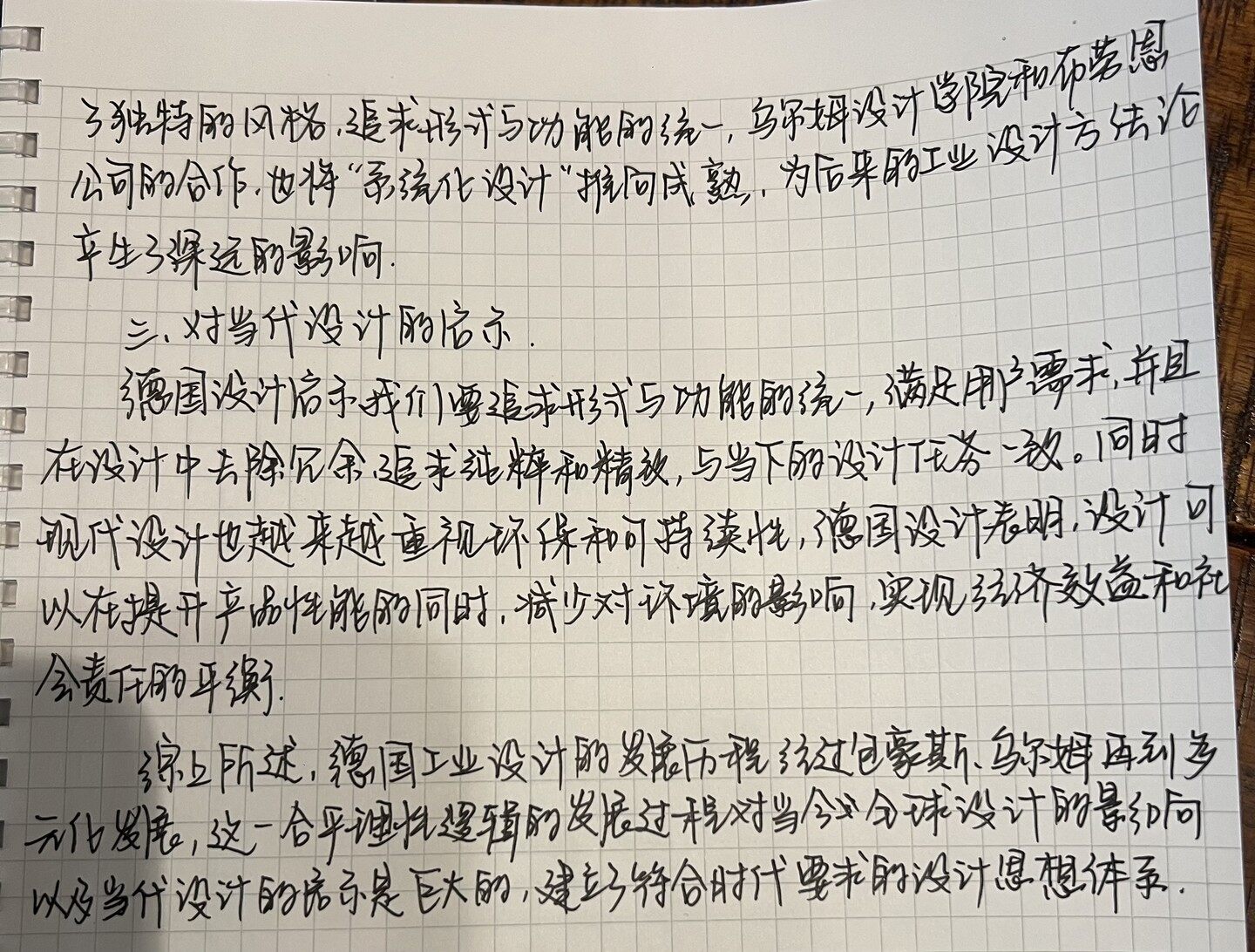 涝恩 了独特的风格,追求形式与功能的统一,乌尔姆设计学院方法 公司的合作,也将“系统化设计“推向成熟,为后来的工业 产生了深远的影响. 三、对当代设计的启示 德国设计启示我们要追求形式与功能的统一,满足用户需求,开且 目 在设计中去除冗余.追求纯粹和精致,与当下的设计任务一致。同时 现代设计也越来越重视环保和可持续性,德国设计表明,设计口1 以在提升产品性能的同时,减少对环境的影响,实现经济效益和社 会责任的平衡. 宗上所述,德国工业设计的发展历程经过包豪斯、马尔姆再到多 1元化发展,这一合平理性逻辑的发展过程对当今全球设计的影响 以及当代设计的启示是巨大的,建立了符合时代要求的设计思想体系