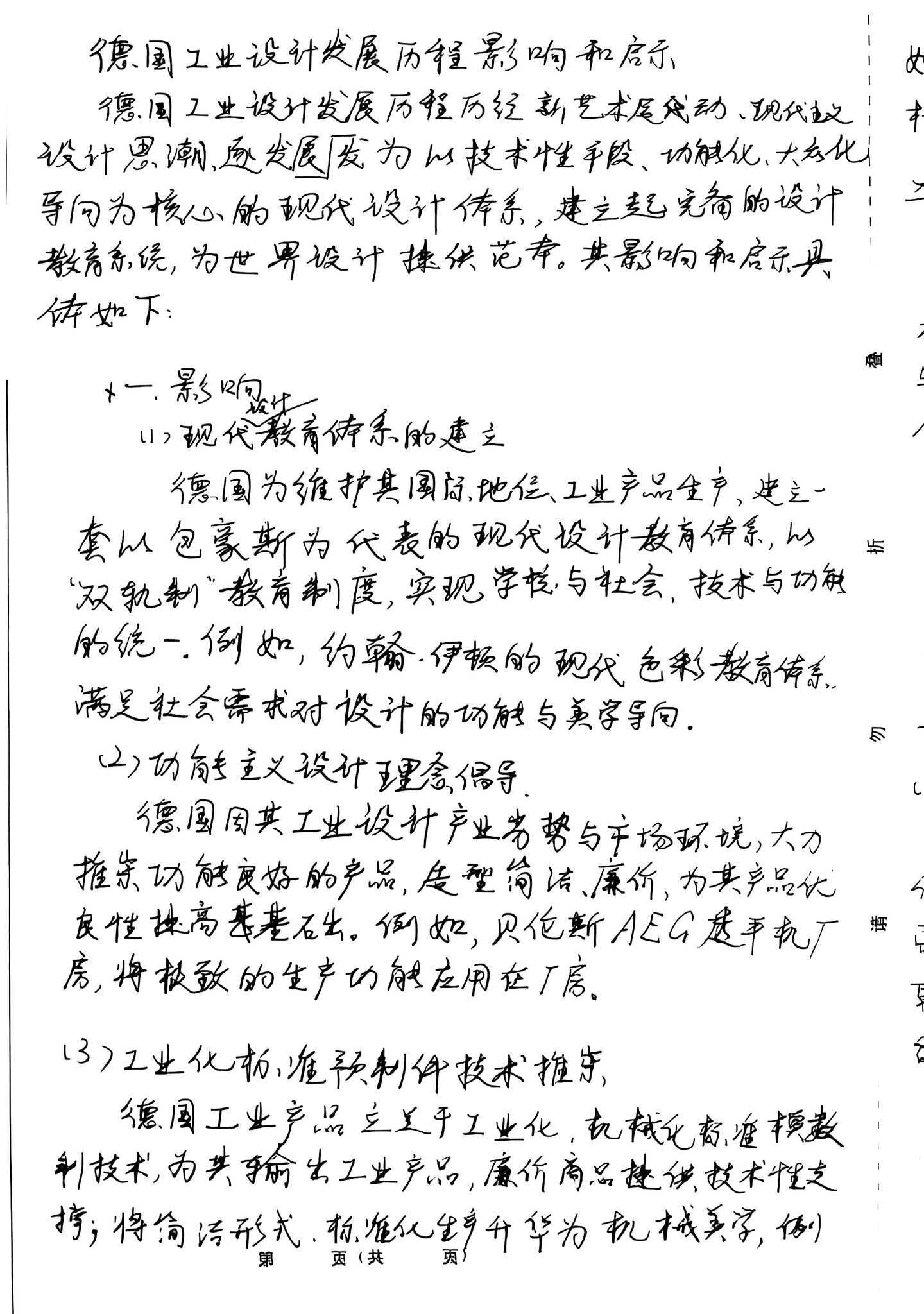 德国工业设计发展历程影响和启示 女 德国工业设计发展历程历经新艺术是动、现代主义 设计思潮,逐发展发为以技术性手段,功能化,大众化 导向为核心的现代设计体系,建立起完备的设计 教育系统,为世界设计提供范奉。其影响和启乐具 体如下: 四 一,影响生 1)现代教育体系的建立 德国为维护其国际地位,工业产品生产,建立一 套以包豪斯为代表的现代设计教育体系,以 双轨制”教育制度,实现学校与社会,技术与功能 的统一,例如,约翰.伊顿的现代色彩教育体系, 满足社会需求对设计的功能与美学导向. (2)功能主义设计理念倡导 德国因其工业设计产业劣势与市场环境,大力 推宗功能良好的产品,造型简洁、廉价,为其产品优 良性提高基础。例如,贝伦斯AEG透手机厂 房,将极致的生产功能应用在厂房。 (3)工业化标,准预制件技术推 德国工业产品立足于工业化,机械化标,准模数 制技术,为其输出工业产品,廉价商品提供技术性支 撑,将简洁形式,标准化生产升华为机械美学,例 第 页(共