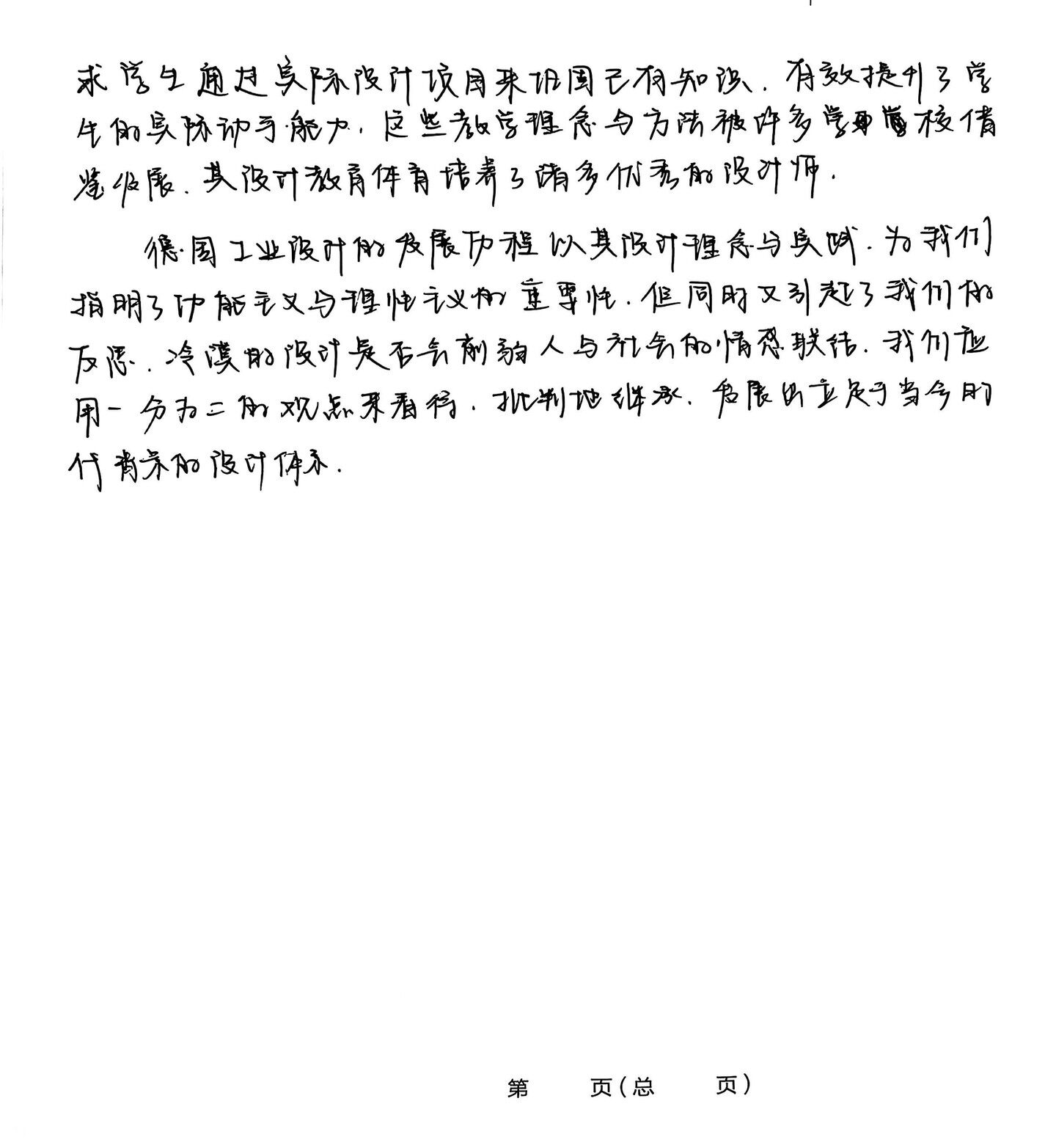 求学生通过实际设计项目来巩固已有知识,有效提升了学 生的实际动手能力,这些教学理念与方法被许多学校借 鉴发展,其设计教育体育培养了诸多优秀的设计师, 德国工业设计的发展历程以其设计理念与实践,为我们 指明了功能主义与理性主义的重要性,但同时又引起了我们的 反思,冷漠的设计是否会削弱人与社会的情感联结,我们应 用一分为二的观点来看待,批判地继承,发展出立足于当今的 代 背景的设计体系。 第 页(总 页)