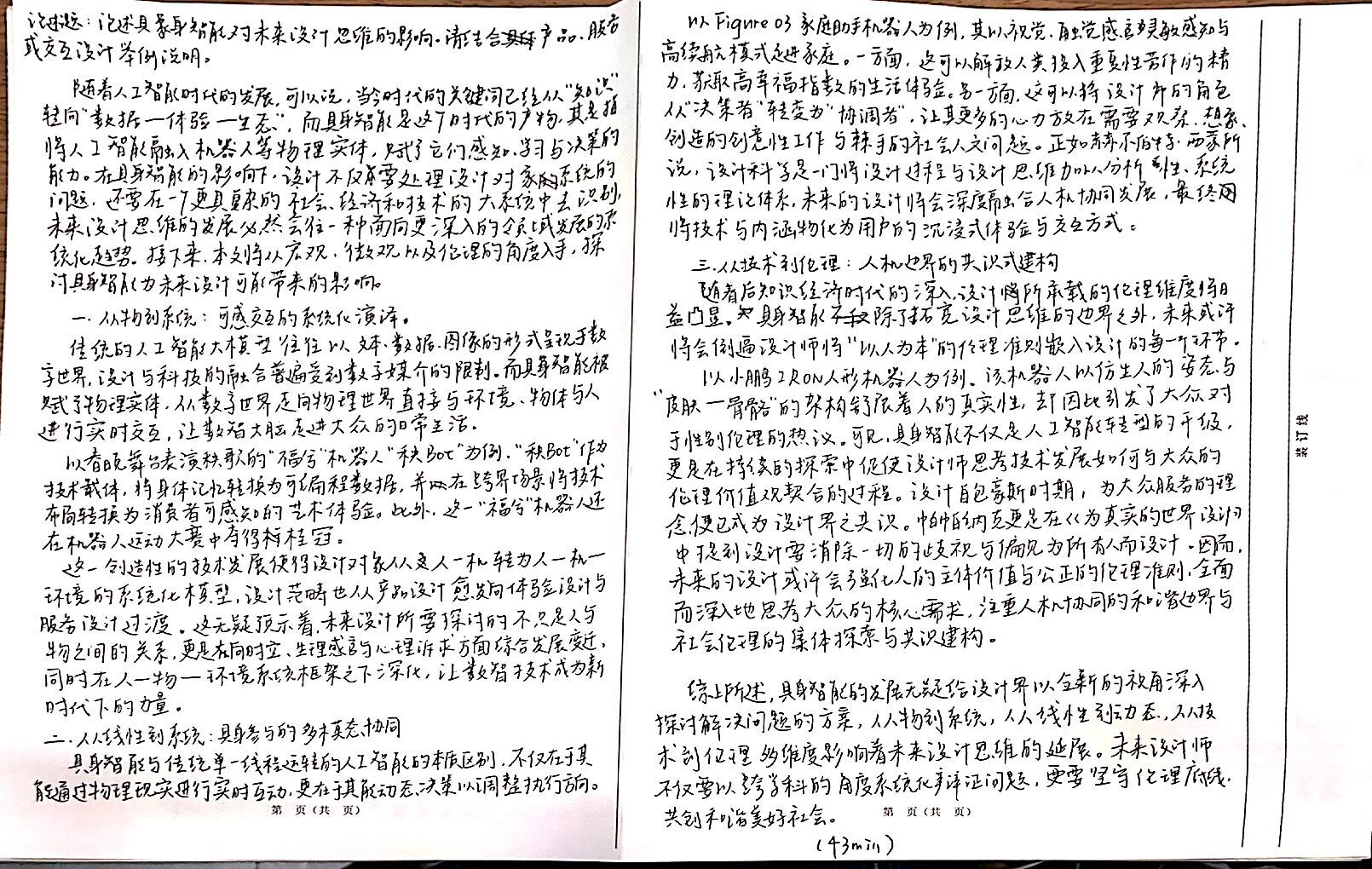 写具身智能的时候没加太多关于具身智能本身的资料与人工智能的历史部分(也记不下来那么多TT),怕超时超字数,就有意识地往设计和设计思维的转变上写了(好像更多的是设计本身而不是设计思维)